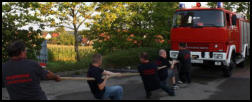 dem Feuerwehrschlauch die angrenzende Wiese löschen. Natürlich wurde zum Abschluss noch eine Einsatzfahrt