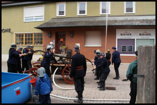 Als pünktlich um 16:00 Uhr das Gasthaus Krone brannte rückte die FFW-Spraitbach mit der historischen