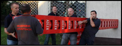 mussten 5 Minuten lang ein brennendes Haus mit der Kübelspritze löschen, dabei war Zielgenauigkeit gefragt,