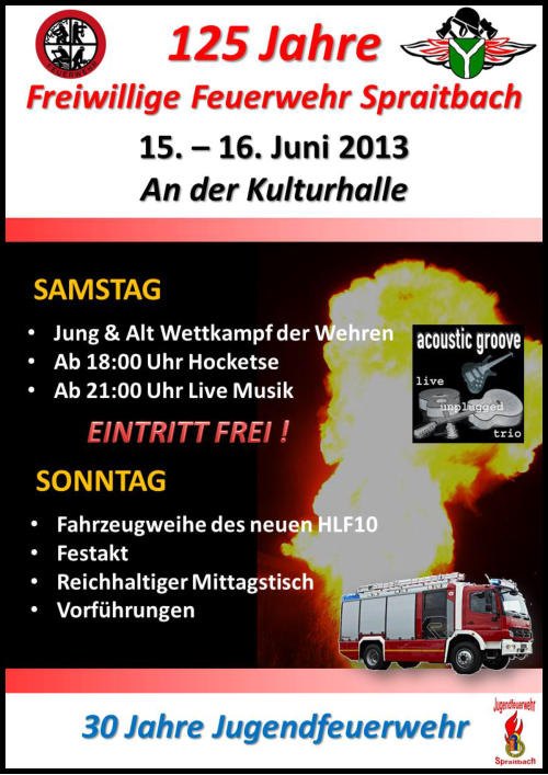 Von 15. - 16. Juni fand das Jubiläum das 125-jährige Jubiläum der FFW Spraitbach und das 30-jährige Jubiläum
