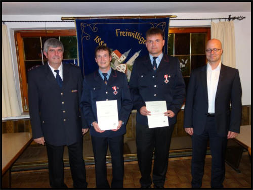 Andreas Urban wurden für 25- jährigen FFW-Dienst geehrt. Außerdem wurden Alexander Bretzler und Maximilian