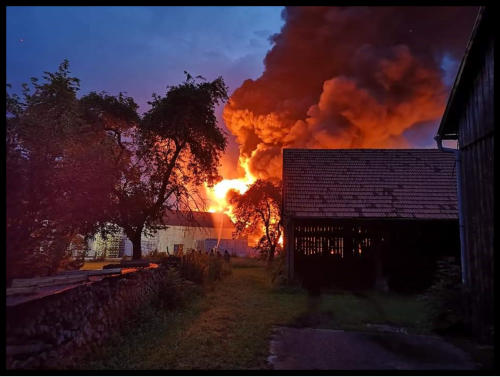 Nachbarorten — fanden sie eine lichterloh brennende Halle vor.