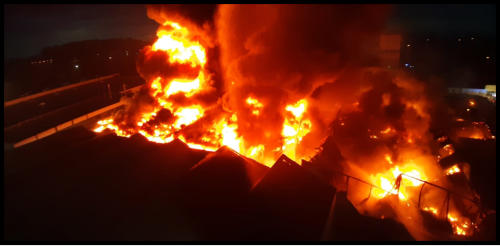 Großfeuer beim ehemaligen Waiko-Gelände mitten in der Nacht. Kurz vor 2 Uhr wurde