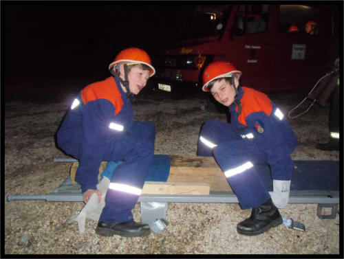 zu absolvieren. Die Übernachtung erfolgte im Gerätehaus. Für die Teilnehmer standen dabei die Elemente