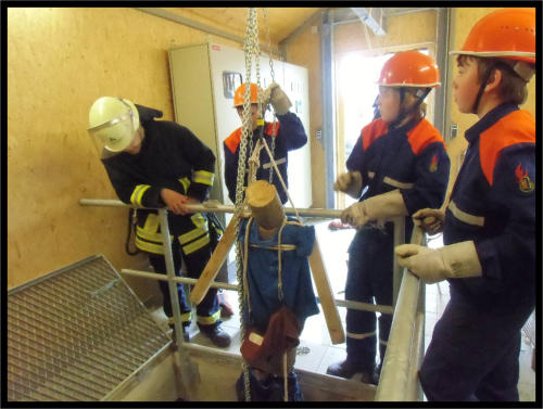 gefallen. Mittels Hebezug wurde diese nun von der Jugendfeuerwehr gerettet.
