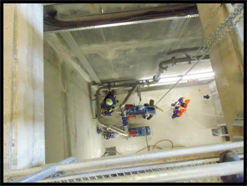 weiterer Einsatz an: Eine Person war ins Überlaufbecken unterhalb der Hirenbachstraße